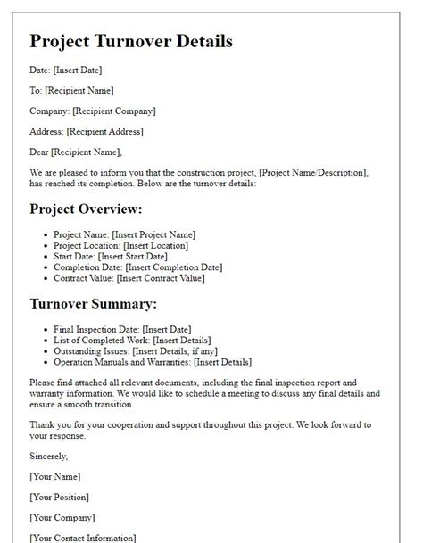Download SAMPLE LETTER TURNOVER CONSTRUCTION PROJECT Doc Gutenberg